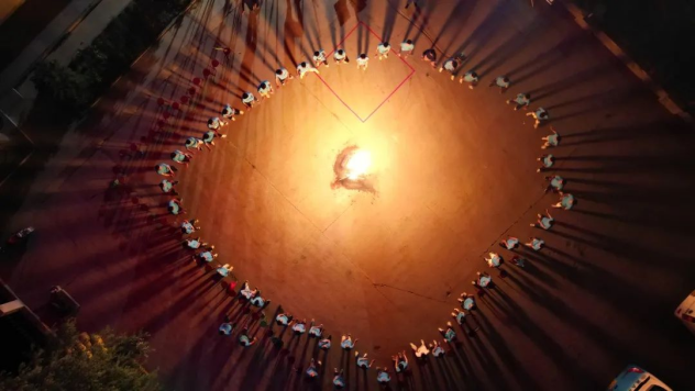 新員工在篝火晚會上進行節目表演
