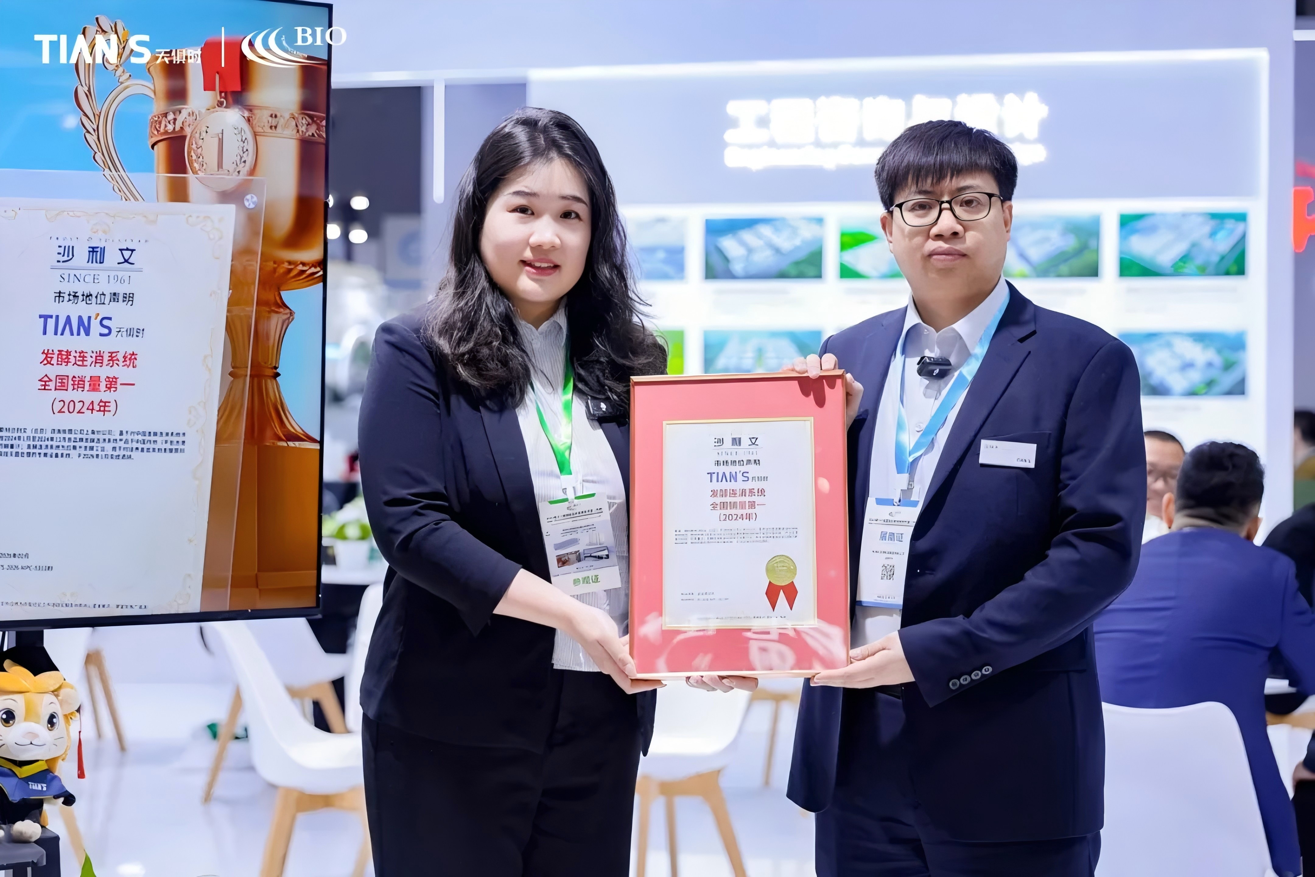 3月9日上午,在天俱時集團展位上,弗若斯特沙利文大中華區醫療行業首席分析師孫榕正式向天俱時集團副總裁田林升頒發“發酵連消系統全國銷量第一”證書。